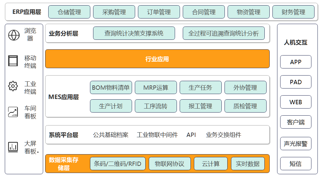底层:含数据层、逻辑层、扩展层、数据实体;接口:含JSON接口和WebServices接口;UI:含PC端UI和移动端UI;模板:含Excel导入与打印模板