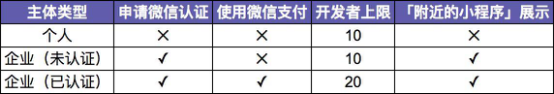 微信支付功能个人主体和组织主体小程序之间的能力差异,最大的应该就是微信支付了。只有通过了微信认证的小程序,才有权使用微信支付接口。也就是说,没有通过微信认证的小程序是无法使用微信支付的。